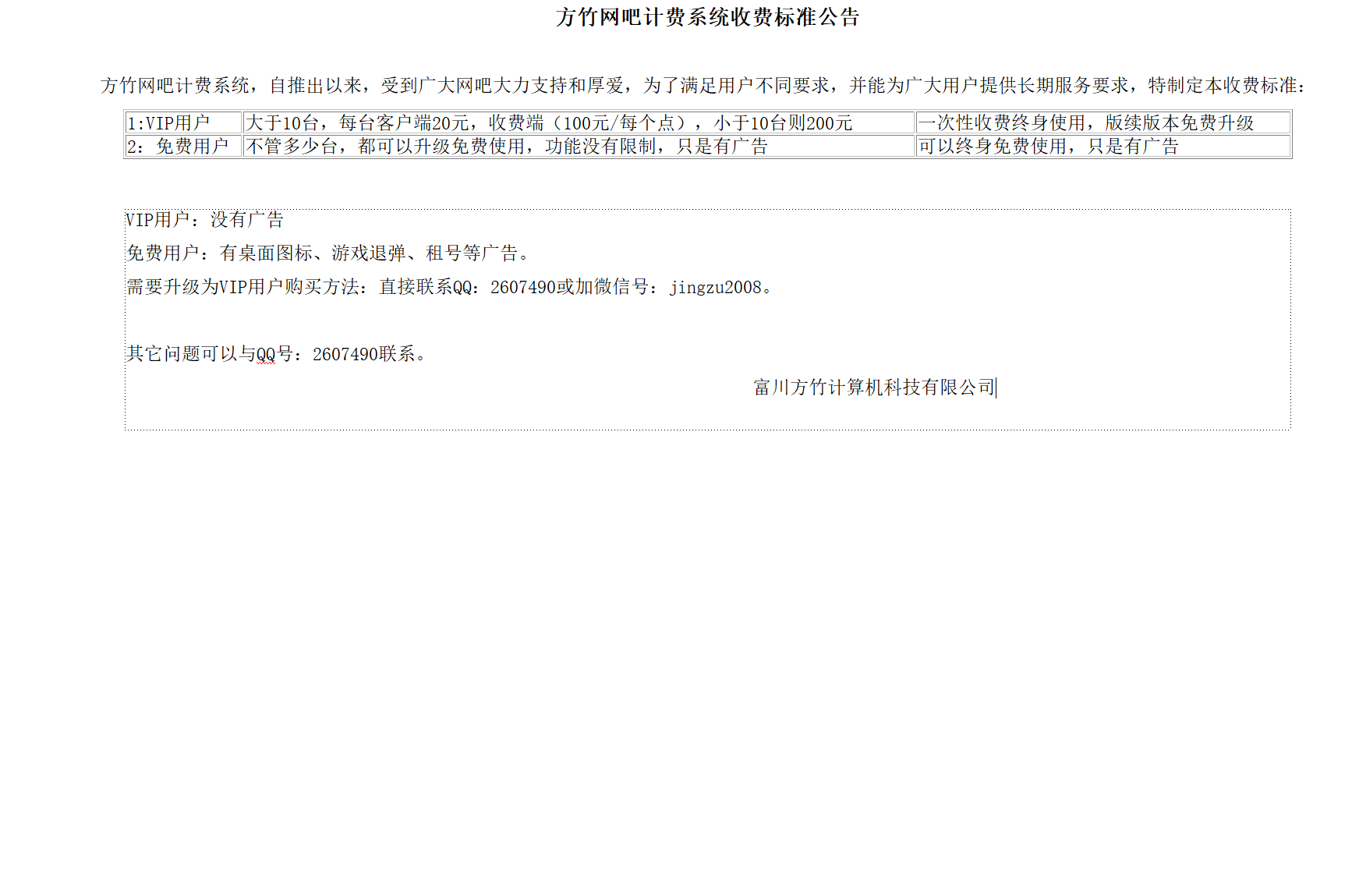 收费标准