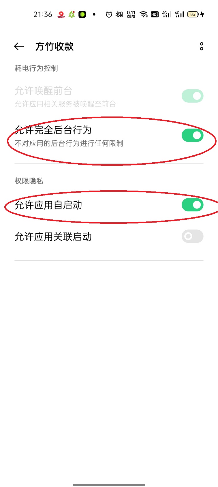 不管您的网吧是黑吧,还是正规网吧,都能轻松实现支付宝、微信自助支付加会员、自助开通、自助充值,轻松实现无人值守。而且是实时到账,无需等待!!这是方竹特有的功能。支付宝支付的直接到支付宝上,微信支付直接到微信钱包里,且无需手续费。如果你没有执照申请或不想付手续费,可以用收款码方法实现自助支付:1:轻松实现微信支付,看这里:微信支付实现(电脑PC微信这里下载)。2:支付宝支付,看这里:支付宝微信支付3:实现自助支付安装方法:请看这里如果您有执照的正规网吧,可向提交资料支付宝、微信公司申请审核,这样由不用收款码,而由支付宝、微信公司自动生成收款码来实现自助支付。操作请看这里:申请审核微信、支付宝自助支付条件建议有执照的申请审核,这样不用运行微信,也不用取收款码。没有执照,只能用下面方法了。网吧软件安装方法:1:无盘客户端安装 请看这里 有盘客户端安装,先把还原设置成不还原,然后直接复制文件夹:fzclinet 到C盘,然后打开文件夹,运行fcclient.exe,退出,再恢复还原即可。2:收费端为绿色程序,直接直接复制到D或E直接运行fzservice.exe即可。关于收款码取法:请看这里关于远程查看网吧上机情况,在方竹APP里有这功能。点“远程查帐”即可显示。关于身份证刷卡器,我们支持普天、新中天两种牌子的二代身份证刷卡器或兼容这两种刷卡器其它牌子刷卡器。使用方法很简单,就是系统设置系统 “禁用身份证刷卡器”把钩去掉即可。接上刷卡器,放上身份证,收费端就有窗口弹出来了。======================================================================最新版APP使用: 不管您的网吧是黑吧,还是正规网吧,都能轻松实现支付宝、微信自助支付加会员、自助开通、自助充值,轻松实现无人值守。而且是实时到账,无需等待!!这是方竹特有的功能。支付宝支付的直接到支付宝上,微信支付直接到微信钱包里,且无需手续费。 方竹计费系统提供的方法有: 1:在电脑上安装微信用于微信支付,用模似器安装支付宝小喇叭和方竹收款APP来配合收费机进行自助支付。 在收费机上运行微信,运行收费机,见下图: 然后点工具-》申请顾客微信、支付宝自助支付见下图:把把有的钩都去掉。 加上自己的微信收款二维码和支付宝收款二维码,就可以轻松使用了。 这种方法和网络有很大的关系,如果网络不好或不稳定时,会出现有时会延时,甚至不能收到支付信息问题。 2:用一台手机(可以是二手的)在手机上运行微信、支付宝,方竹收款APP。 同时设置一些权限: (1)设置微信、支付能在通知栏上显示通知信息。 (2)打开方竹APP 如下图:‘ 填好上面的相关资料后,点保存。 设置通知使用权:见下图: 这样就设置好了。 然后点“测试”按钮,看下图: 这是手机的APP的图 这是收费机图 手机APP还要设置下面的权限: 以OPPO K5为例: 在手机设置系统中设置 “允许完全后台行为” “允许应用启动” “存储空间” 三个权限。 在手机管理中一样这样设置。 这样设置好,APP运行一次,以后不用运行也会在后台自动运行的。 这样设置好后。就可以使用了。由于是通过手机安装APP的,这种方法很可靠,基本上没有延时,收不到等情况发生。 不过手机必需放在收费机旁边,并且有WIFI来网络连接。如果您网吧有执照,建议您去支付宝微信公司申请授权这种是支付宝微信直接通知我们计费系统,不用APP,也不用运行什么就可以使用。且不用自己加二维码,都是由支付宝微信公司生成的,这种方法最可靠,最方便。如果是黑吧,只能上面的方式,根据实际应用来看,用手机来配合来支付是最可靠的方法。所以建议使用第二种用手机配合方法来实现自助支付。做无人值守网吧,有执照的,建议您去提交资料审核方式。如果没有执照的,建议您用手机安装方竹APP方式。这样才能可能进行。如果用在电脑运行微信方式,微信升级就失效了。